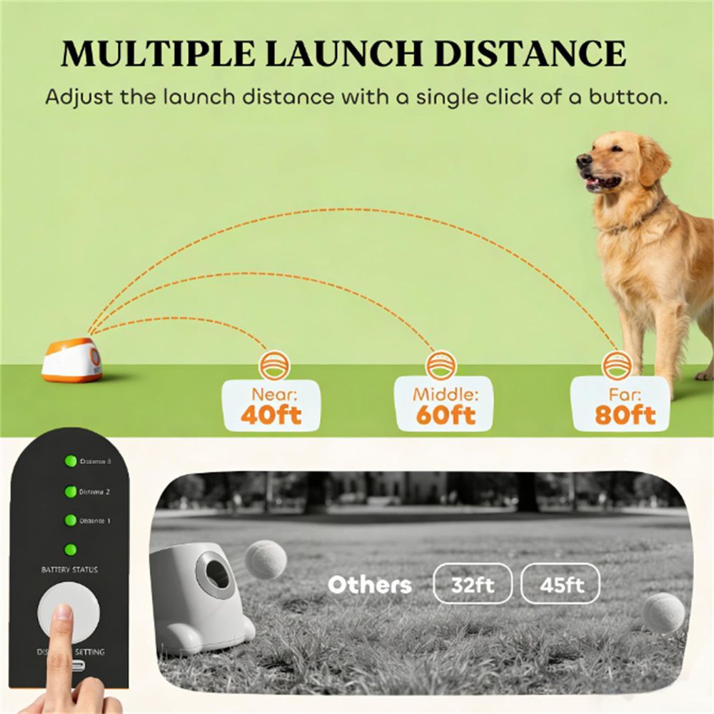 - Automatically launches balls for your dog, providing endless fun while you're busy