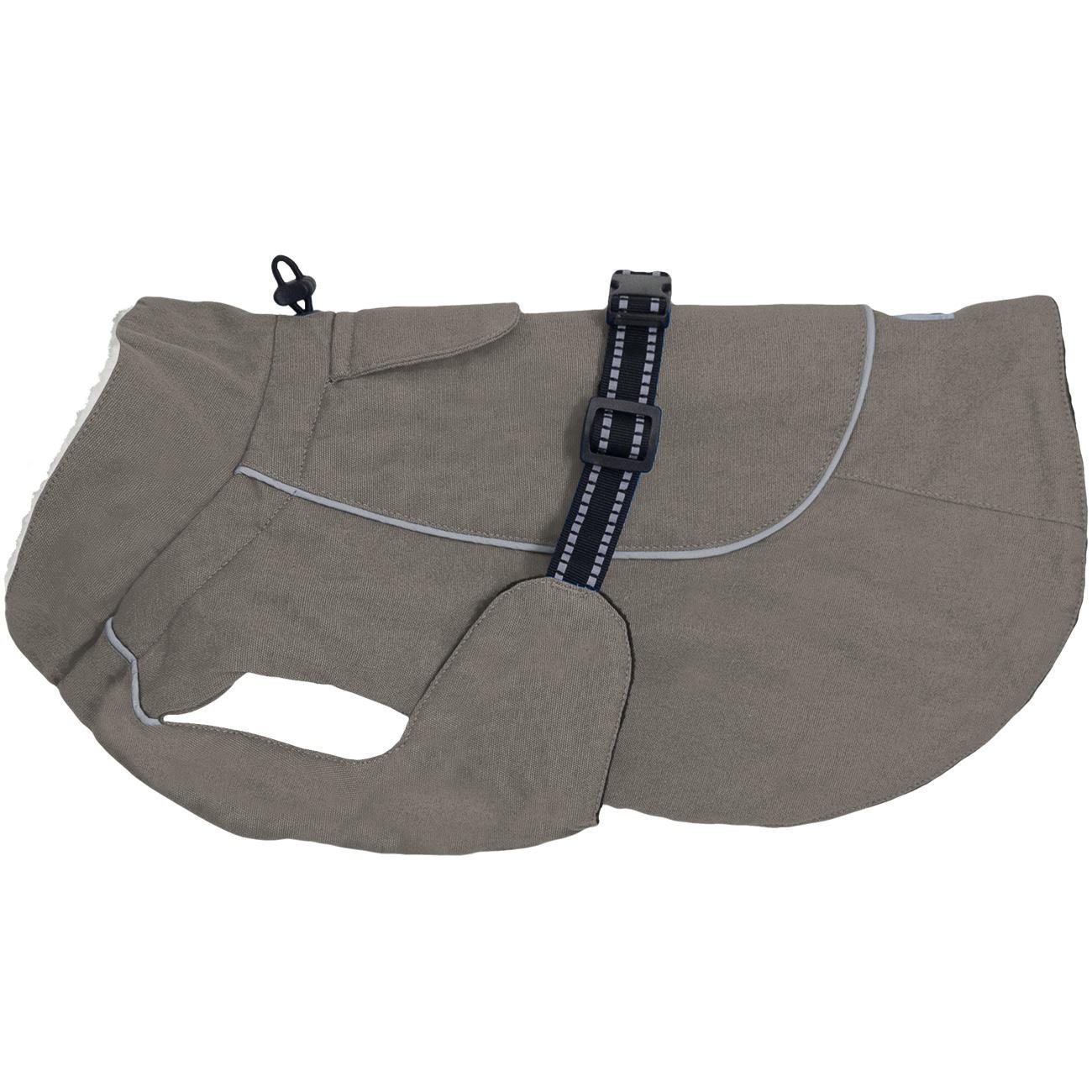 Get ready for the great outdoors! The Alpine Tuf Terrain dog coat is made with a tough cotton canvas outer layer while still keeping the cozy fleece lining and soft sherpa-lined collar of our other Alpine coats. Straps are adjustable with reflective safety trim. Coat offers covered D-ring access hole and is available in sizes XS through 5XL. The cotton canvas fabric is durable and water resistant - excellent for hiking, herding, or trekking through the urban jungle.