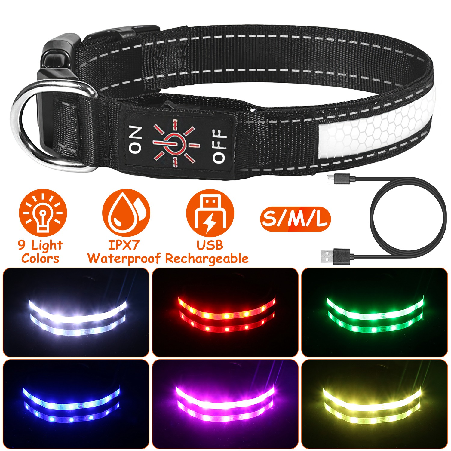 Home > Light Up Dog Collar LED Dog Collar Safety Night Glowing Dog Collar with 9 Light Colors IPX7 Waterproof USB Rechargeable S/M/L