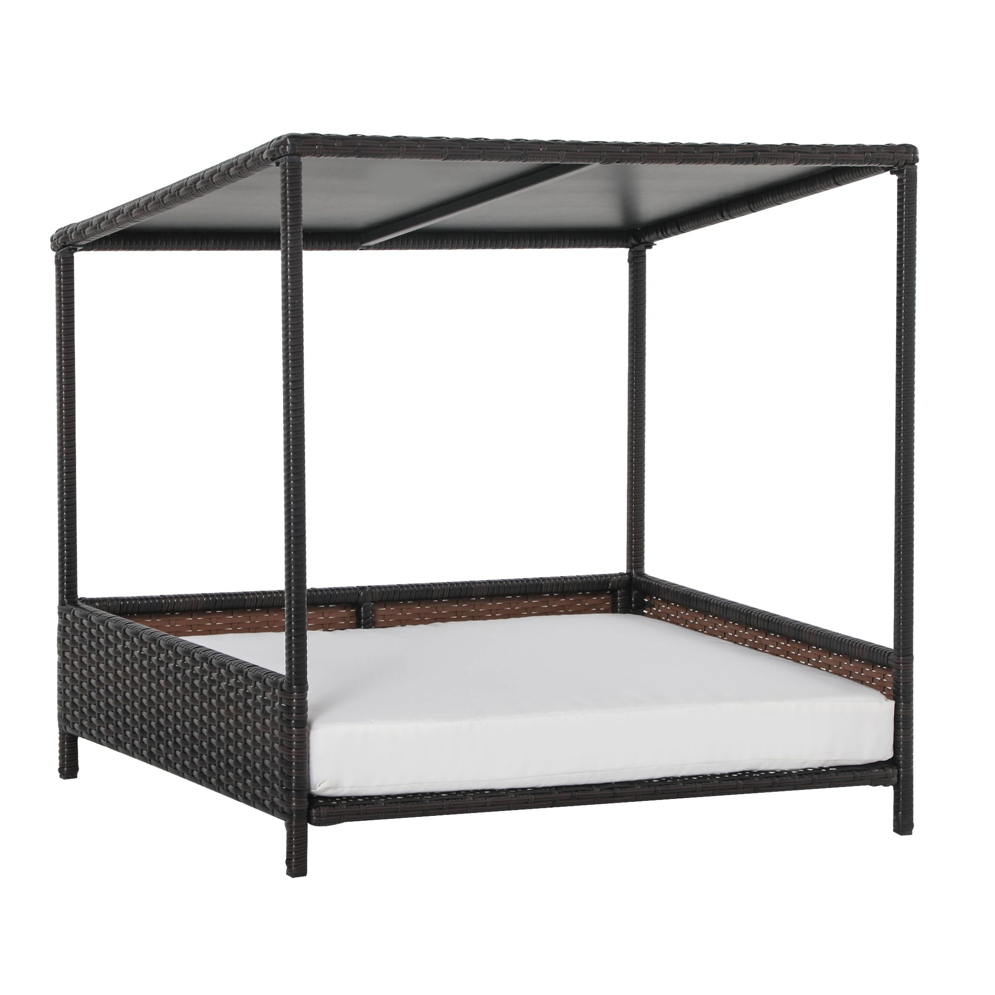 Home > Wicker Dog House Raised Rattan Pet Sofa with Cushion for Indoor Outdoor Brown