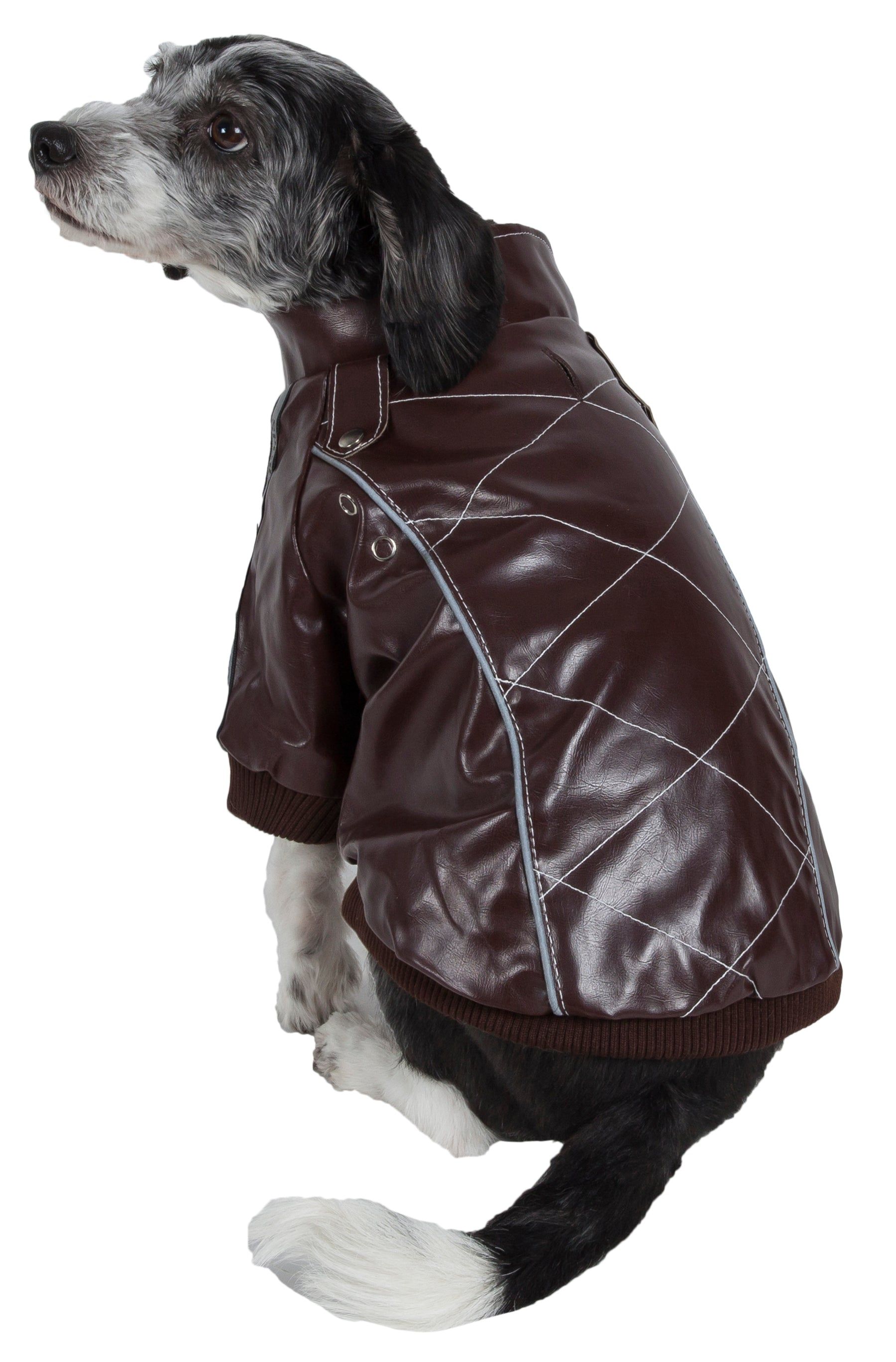 The Pet Life 'Tough Rider' Fashion Dog Coat features a back cross-stitched and accented buttoned design along the back. This pet coat also features snap button closure by the belly for easy on/off access and a leash slit holder behind the neck area. Available in multiple sizes.